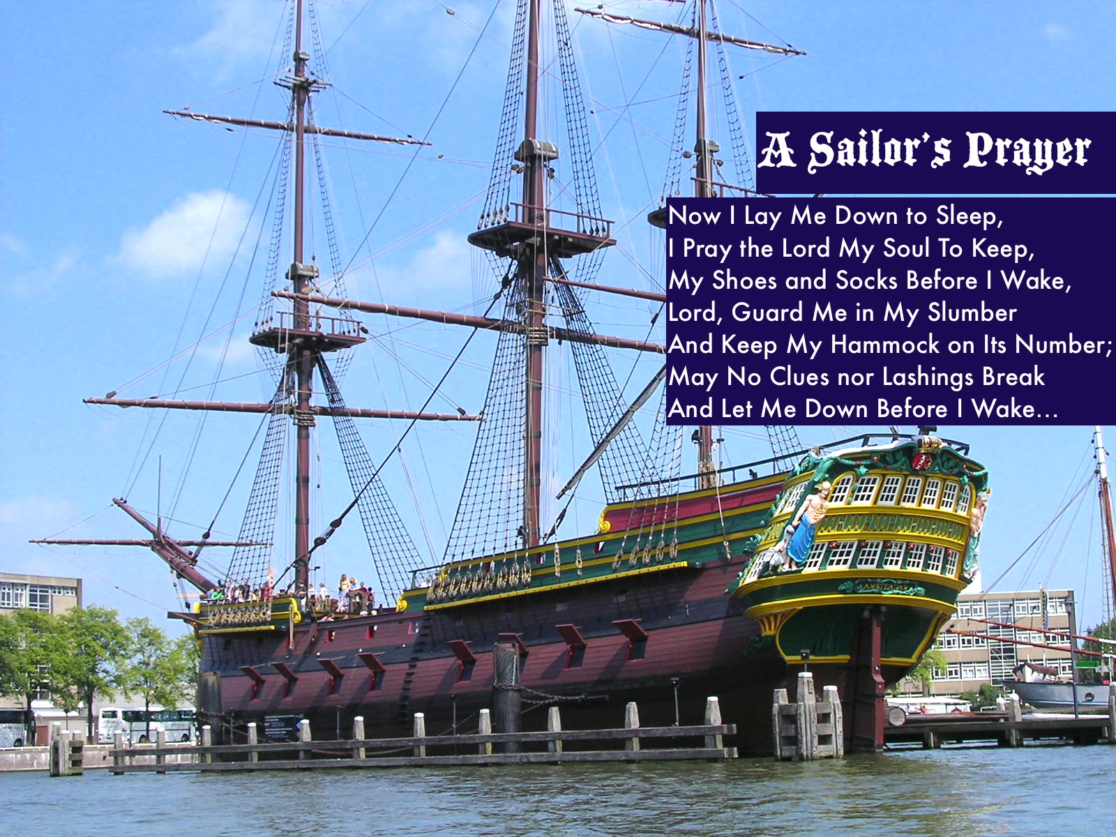 It was a bright windy day in June, and the sun was retiring for the day. The fisherman just finished pulling in the last few feet of their net after a fruitful catch outside the bay. As the men were out at sea many miles from home, they began to prepare for their seward night lone. Each of the men climbed into their hammocks dressed with linens and fabrics, blankets woven to remind them, while they slumber, of home. And as their boat gently rocked in the crests and wanes of the enormous sleeping sea, the fisherman lay comfortably sleeping with their hammocks keeping still… so they lay restful as can be!
